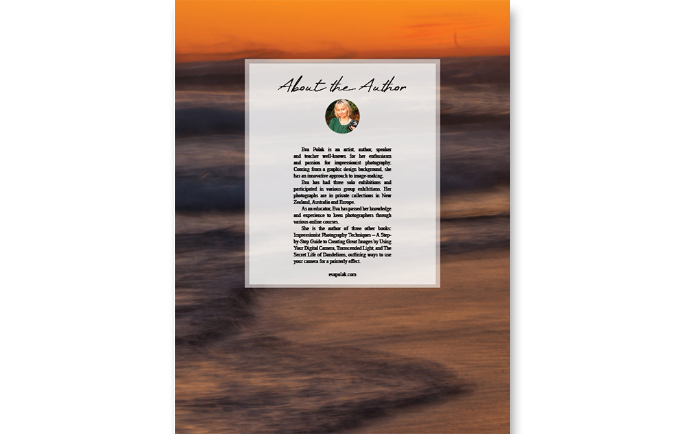 I've been taking pictures of the sea for years, but this book showed me how to really capture its mood and movement. The in-camera techniques are easy to understand and the examples are stunning. I've already learned so much and I can't wait to try out these techniques on my own. Karen