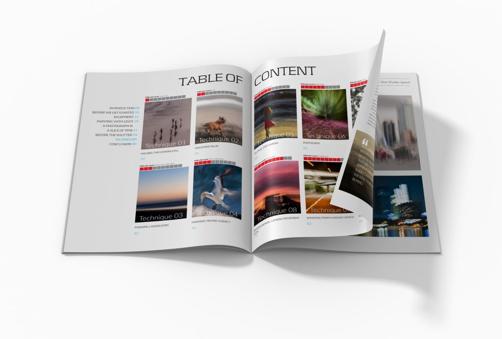 With each page, you’ll discover the true beauty of impressionist photography and how to capture the essence of every subject with the right amount of light, movement, and creativity. The book emphasizes the importance of experimentation and play to explore and understand each technique fully. It encourages you to embrace mistakes and use them as a creative tool to refine the effect until you achieve the perfect shot.